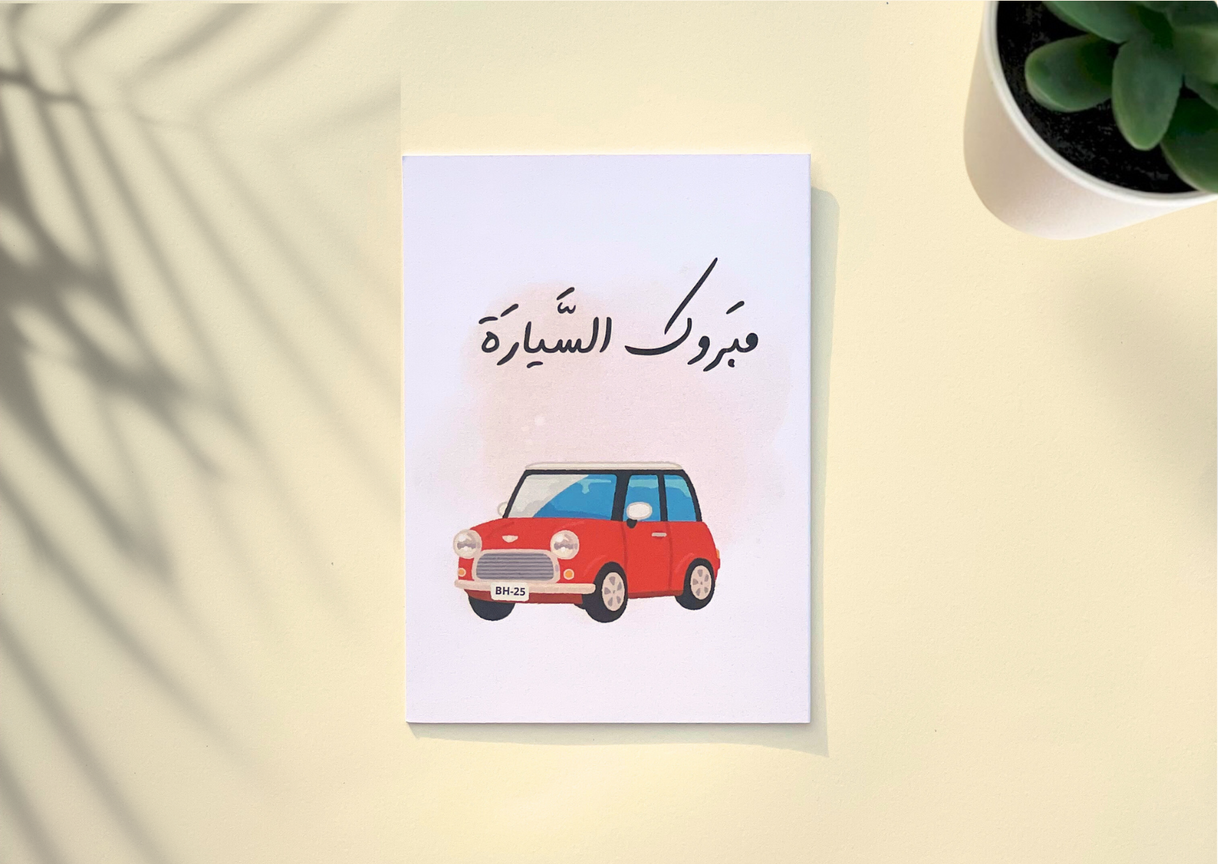 بطاقة تهنئة مميزة بحجم 15 × 11 سم، بتصميم أنيق وألوان حمراء مشرقة تعبّر عن الفرح والاحتفال. البطاقة فارغة من الداخل لتترك لك مساحة لكتابة رسالتك الخاصة والمميزة. مناسبة لتقديمها مع الهدايا أو كلفتة شخصية جميلة للاحتفال بالسيارة الجديدة.